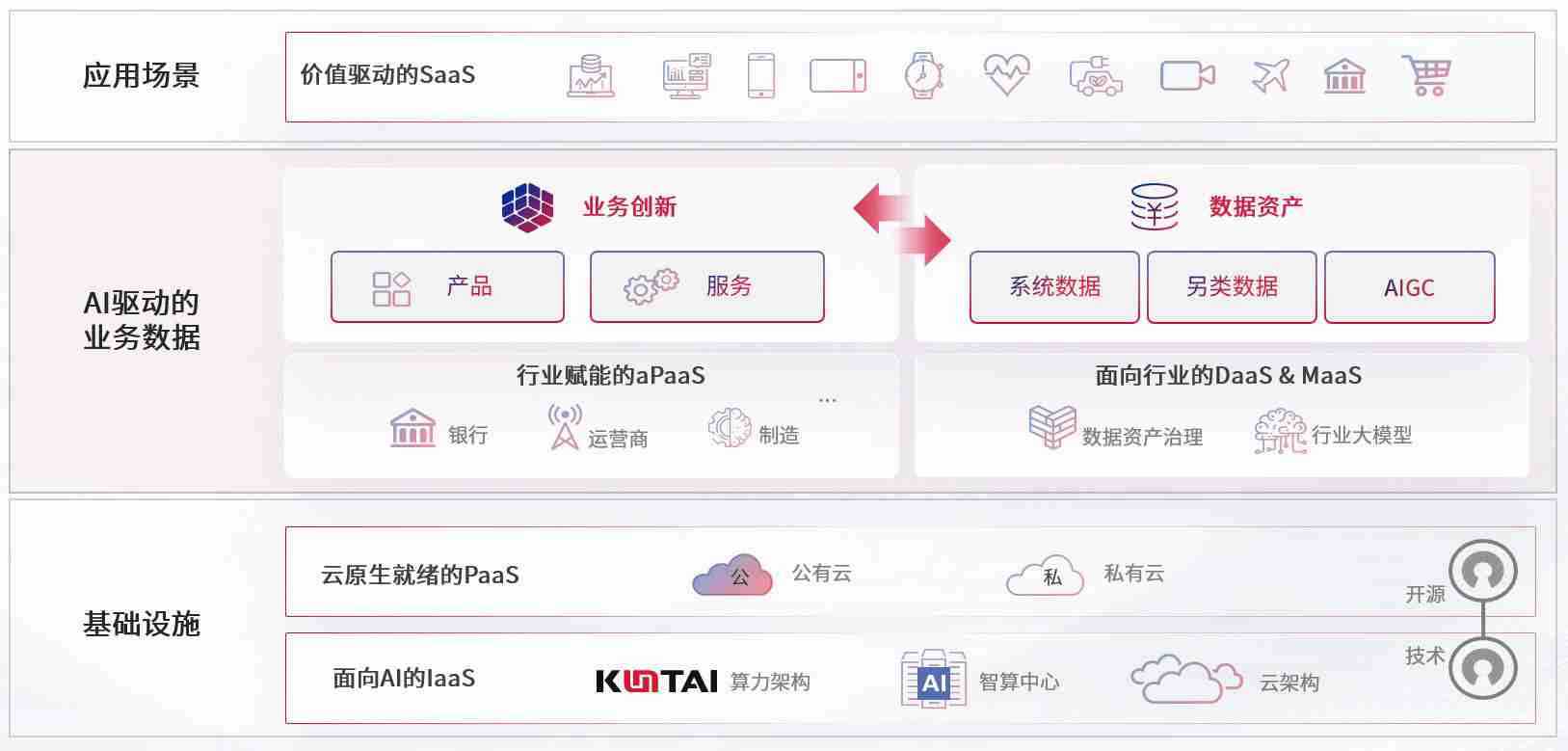 数字时代,,,,围绕企业数字化转型的关键要素,,,,尊龙数码开创性的提出数云融合战略和技术体系框架,,,着力在云原生、、数字原生、、、、AI原生和信创产业上架构产品和服务能力,,,为处在不同数字化转型阶段的快消零售、、汽车、、金融、、、医疗、、政企、、、、教育、、运营商等行业客户提供泛在的敏捷IT能力和融合的数据驱动能力,,构建跨界融合创新的数字业务场景和新业务模式,,,助力企业级客户建立面向未来的核心能力和竞争优势,,,,全面推动社会的数字化、、智能化转型升级。。